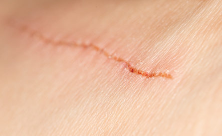 Primary wound healing occurs when the tissue surfaces are closed by stitches, staples, skin glue, or steri-strips. A surgical incision that is closed by stitches is a good example. This sort of closure of the wound surfaces creates very little tissue loss, and makes the wound healing process as quick and easy as possible.