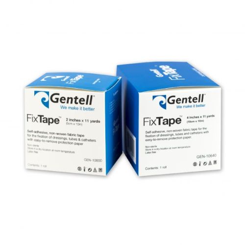 Gentell FixTape™ is a self-adhesive, non-woven fabric tape for the fixation of dressings, tubes, and catheters with easy-to-remove protection paper.