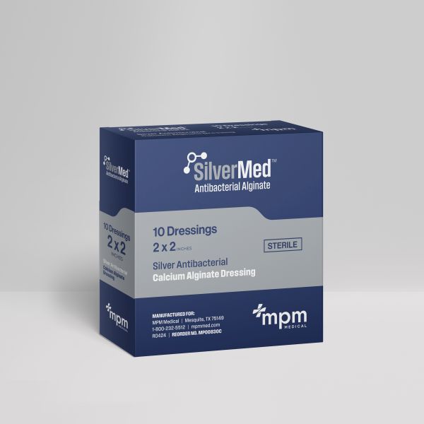 SilverMed™ Antibacterial Alginate is a calcium alginate dressing that contains antimicrobial silver. Indicated for moderately to heavily draining wounds.