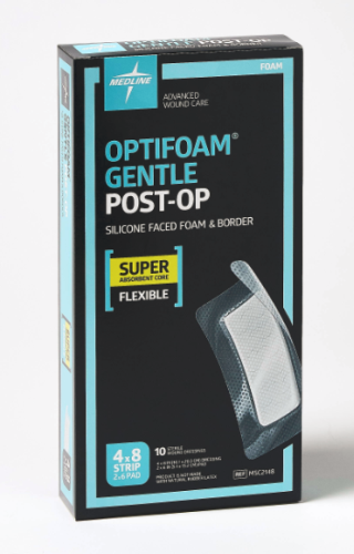 Covaderm® is an adhesive-bordered, non-adherent, air and fluid permeable primary or secondary "post-op" dressing with a stretchable fabric tape. Conformable on difficult-to-dress areas.