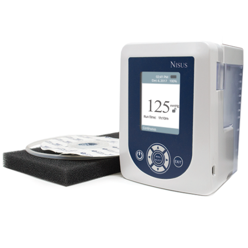 The Nisus Negative Pressure Wound Therapy Pump provides gentle powered suction to treat and promote wound healing by aiding in the removal of excess exudates, infectious material and tissue debris. Patent pending.