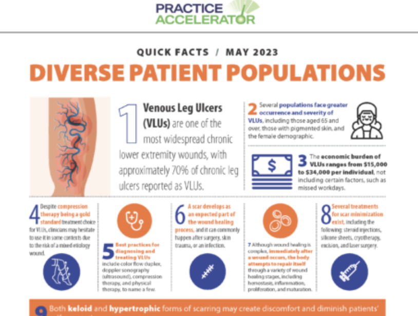 For this month's WoundSource Practice Accelerator series, we are providing education on a variety of topics related to the management of wounds in diverse patient populations. Scroll below to read this month's white paper and articles, to print out our quick fact sheet, and to view other resources.