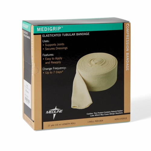 Tubular elastic compression devices are indicated for the management of venous hypertension, venous ulcers to reduce edema and aid return of venous blood to the heart. They can also be used to provide mechanical support to joints or to minimize pressure and shear on the skin.