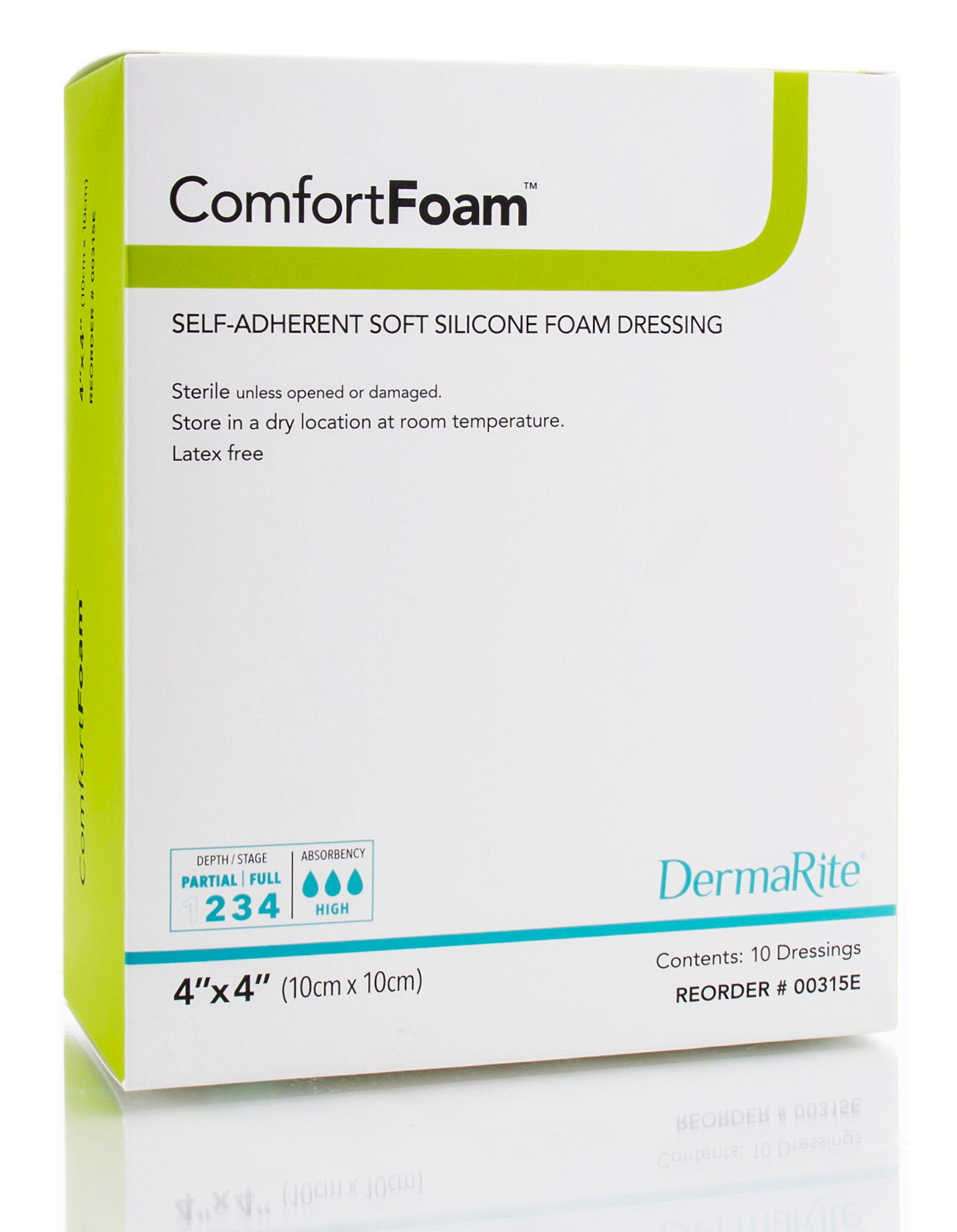 ComfortFoam™ is a self-adherent silicone foam dressing with soft silicone contact layer, flexible absorbent polyurethane foam pad, and vapor permeable, moisture-proof outer film.