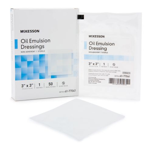 McKesson Oil Emulsion Dressings are non-adhesive dressings that consist of a high-porosity gauze dressing impregnated with petrolatum. Can be used directly on draining wounds beneath a secondary absorbent dressing.