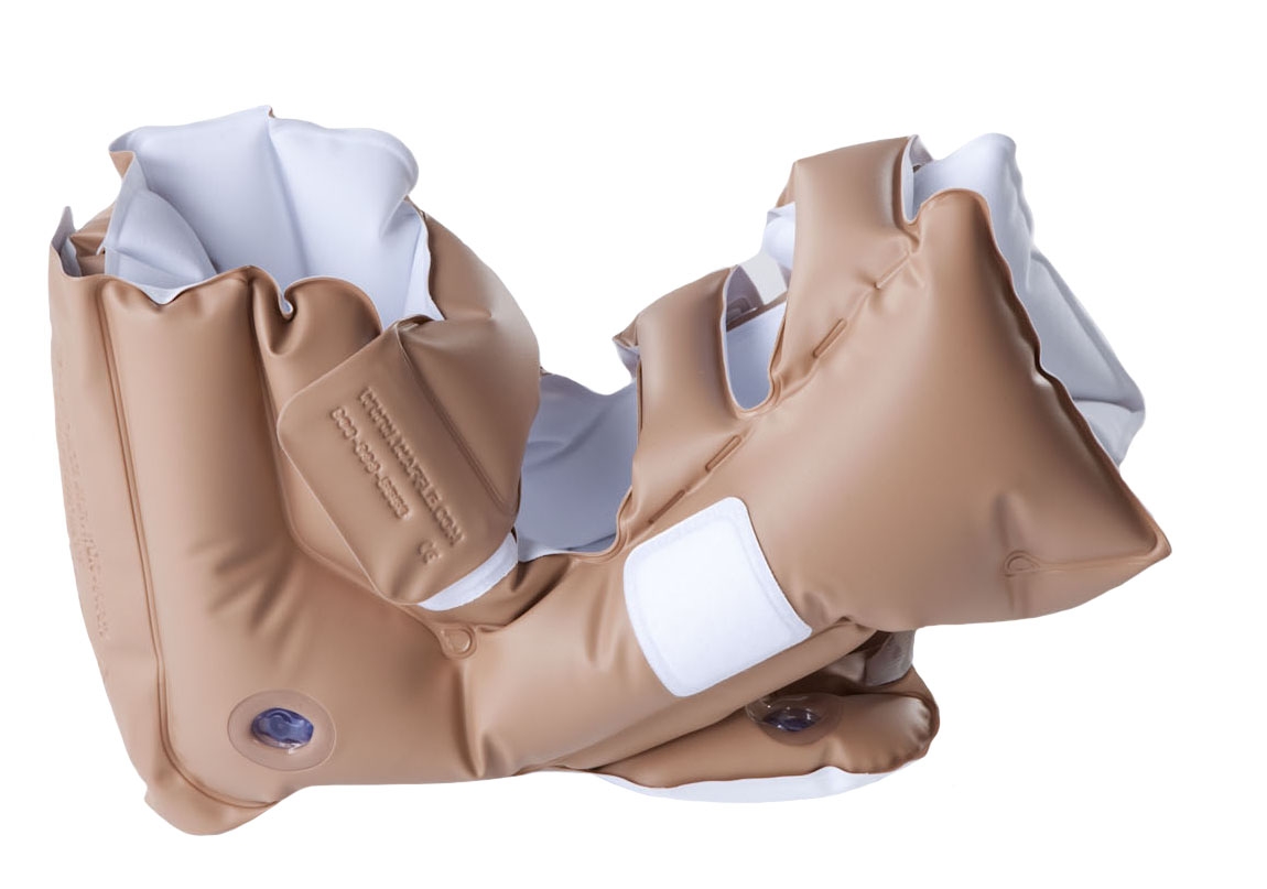 WAFFLE® Heel Elevator Custom surrounds the lower limb in air and is designed to float the heel while sustaining the integrity of the foot and ankle. The air-filled straps and foot pad offer pressure ulcer prevention, treatment and comfort. It can be used conveniently at home and on OR tables, stretchers, ICU beds, wheelchairs and general ward beds.