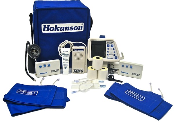 Equipment used to perform vascular study can measure blood flow velocity, determine segmental blood pressures including ankle-brachial index (ABI), monitor transcutaneous oxygen (TcpO2), measure skin perfusion pressure (SPP) and pulse volume recording (PVR), and perform photoplethysmography (PPG) tests.