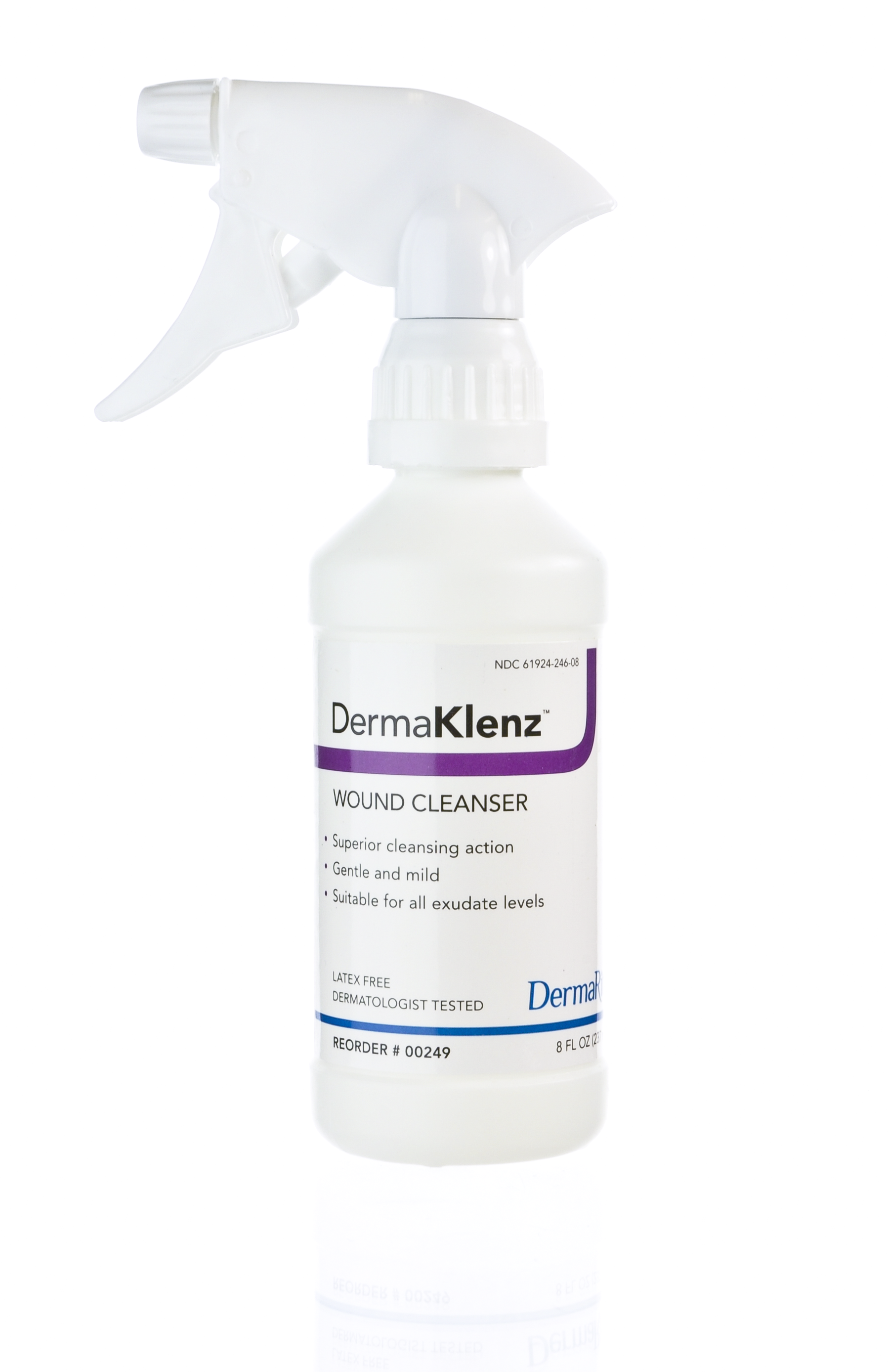 DermaKlenz™ is a no-rinse wound cleanser that promotes removal of debris. Formulated with zinc. Easy spray application.