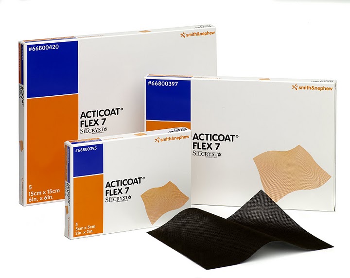 ACTICOAT* Flex 7 is a highly conformable dressing that follows the body's contours to maintain contact with the wound surface. Can be used as a wound contact layer with NPWT for up to 3 days.