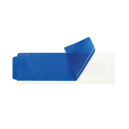 Hold the flap of the top blue liner and peel off. Place the exposed adhesive on the skin and smooth the dressing over the skin. Hold the flap of the remaining blue liner and peel off and smooth the dressing over the skin towards the edges. To remove frame; start from the pre-cut line, peel off in a circular motion and smooth the dressing towards the edges to ensure good adhesion.