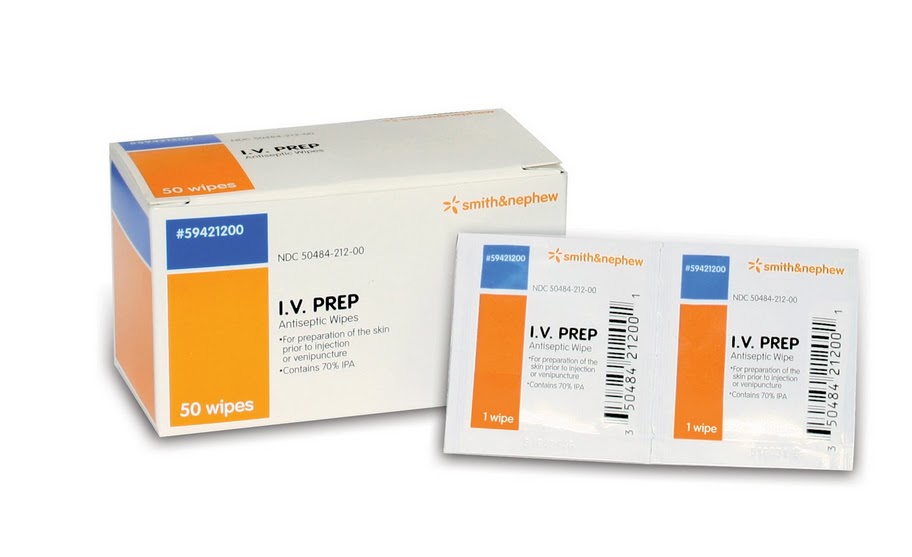 I.V. PREP Antiseptic Wipes are for use as antiseptic wipes for preparation of the skin prior to a venipuncture or injection.