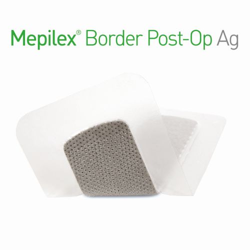 Mepilex® Border Post-Op Ag is a self-adherent, soft silicone foam antimicrobial dressing for surgical wound management.