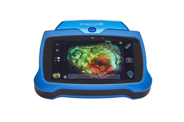 MolecuLight DX™ is a point-of-care, handheld fluorescence imaging device for real-time digital wound measurement and for detection of elevated bacterial burden in wounds, in combination with clinical signs and symptoms of inflammation and/or infection. Offers stickerless digital wound measurement with >95% accuracy and enables capture of a standard image, a digital wound measurement image, and a fluorescence image without interrupting workflow.