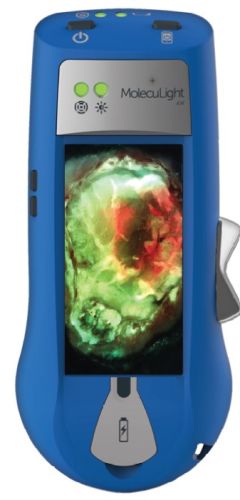 MolecuLight i:X® is a point-of-care, handheld fluorescence imaging device for real-time digital wound measurement and for detection of elevated bacterial burden in wounds, in combination with clinical signs and symptoms of inflammation and/or infection. Features a digital wound measurement function with >95% accuracy and enables capture of a standard image, a digital wound measurement image, and a fluorescence image without interrupting workflow.