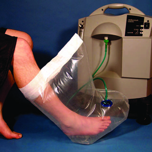 O2Boot®, O2Sacral® and O2Sleeve™ are indicated for use on skin ulcerations due to diabetes, venous insufficiency, post-surgical infections, gangrenous lesions, pressure ulcers, skin grafts, burns, frostbite and amputations/infected stumps.