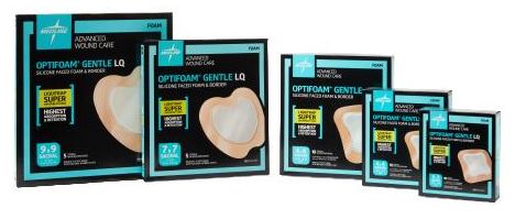 Optifoam® Gentle Silicone Faced Foam and Border Dressing with Liquitrap™ Core is indicated for use on pressure injuries, partial- and full-thickness wounds, leg ulcers, donor sites, lacerations, abrasions, skin tears, and first- and second-degree burns.
