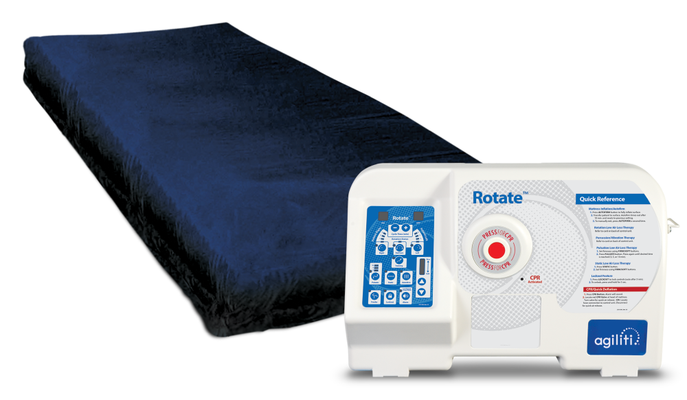 Rotate™ and its bariatric counterpart, Big Turn™, provide continuous lateral rotation therapy (CLRT) and immersion for pressure redistribution. The surfaces' low air loss capability and high-tech fabric combine to help control patient microclimate.