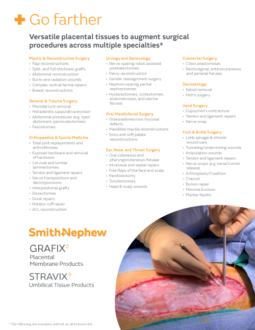 STRAVIX* Lyopreserved and Cryopreserved Umbilical Tissue Products are structural placental allografts for wound management and surgical applications that retain all the components of umbilical tissue including native placental cells, growth factors and a hyaluronic acid rich extracellular matrix.