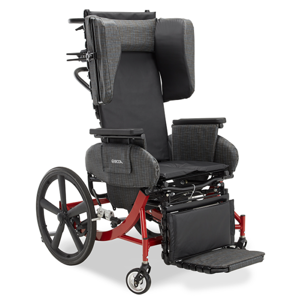 The Synthesis Positioning Wheelchair features Broda’s unique Comfort Tension Seating® system, providing pressure redistribution and airflow for increased sitting comfort and support.