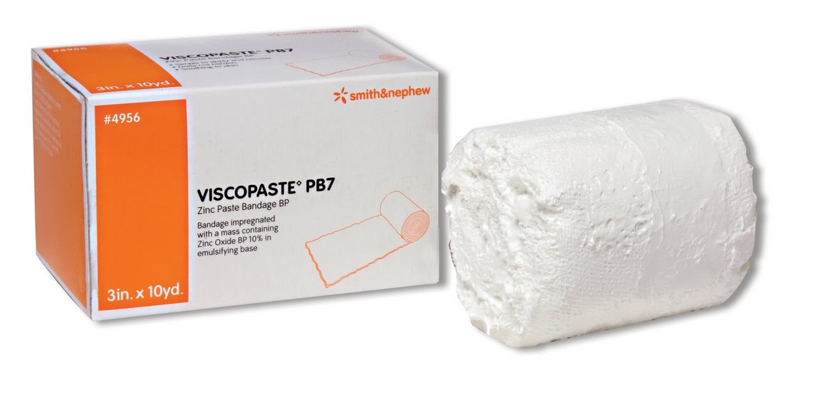 VISCOPASTE* PB7 is a zinc oxide paste bandage for the management of venous leg ulcers and stasis eczema. Soothes dry skin without calamine. Light open-weave fabric. Simple to apply, easy to remove.